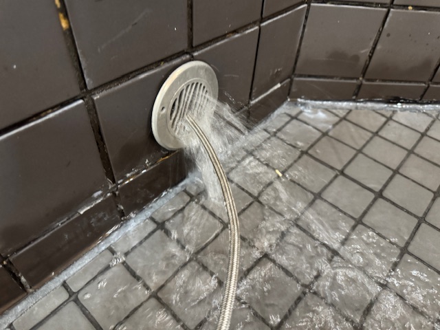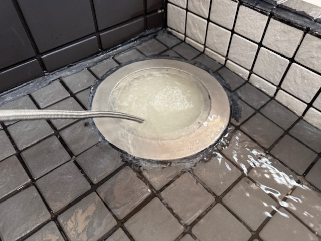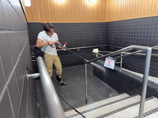 最後に、浴槽内を高圧で洗浄したら一旦水張りをして、すすぎ作業を実施します。