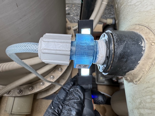 薬注ポンプを動かしながら、薬注ポンプのエア抜きを実施し、正常に運転する事を確認したら、実際に濃度を測って塩素の注入状態をチェックします。