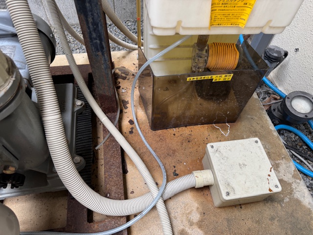 塩素を送る【薬液ホース】も劣化していたので、取り替えました(^^) これでまた安心してご使用頂けます。ただ、お風呂を運用していると、機器の不具合や注入部品の詰まりは起こってくる為、定期的なメンテナンスが必要になってきますね(^^)