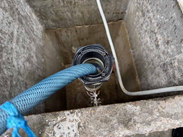 手作業の洗浄が終わると、今度はろ過装置内や配管内に残った薬剤や汚れをすすいでいきます。何回かすすいだらキレイになってくるので、その状態で続いて殺菌作業を行います。