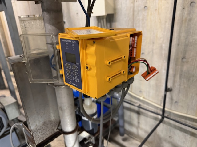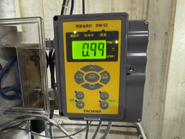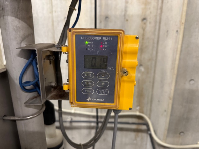 そのお悩みを少しでも和らげてくれるのが「自動塩素濃度計」と呼ばれる「今、残留塩素濃度がこのくらいだよ!」と計測してくれる装置です。