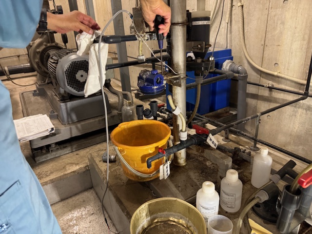 無事に試運転も終わり、これで更新工事完了です(^^)v 定期的に計測値と実測値を補正しながら運用していく必要がありますが、これで塩素注入ポンプに「今塩素を入れなさい!」とか「もう設定値に達したから、注入を止めなさい」と信号を送りながら運用してくれるので、残留塩素濃度が高すぎたり低すぎたりという事態は防ぎやすくなります(^^)v