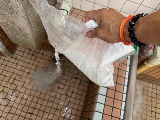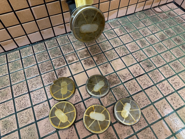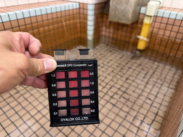 また、給湯器での追い焚き循環をしているお風呂では、塩素が自動で注入できる設備を設置しにくい為、ほとんどの施設様で、入浴前に浴槽へ塩素を撒いて衛生を保っておられる事かと思われます。この場合、入浴中も塩素濃度を測り、少なければ塩素を足すという事ができれば良いのですが、なかなかそれも難しいかと思われます。その為、汚れを溜めない意味でも、定期的に薬品で洗浄してあげると良いかもしれません。