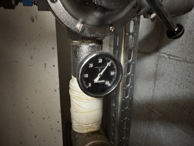 最後に試運転作業を行い、補給温度が適温か?や、給湯器は全台数きちんと燃焼するか?等をチェックし、問題が無ければ、水質検査用の採水を実施して完了です(^^)v