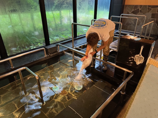浴槽水を循環して使用している大浴場では、知らぬ間に「見えない所に汚れが蓄積している」事も・・・。 今回も、そんな汚れを「蓄積させない」為の定期的な洗浄作業を実施しました(^^)