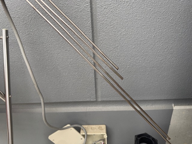続いて、こちらは【電極棒】呼ばれる物で、浴槽水の水位を検知している【水位計】と呼ばれる物の中に入っています。浴槽に水が溜まってくると、浴槽内の水位計用の配管を通ってこの水位計に同じように水が溜まってきて、それぞれ長さが異なる電極棒によって「あ、今このくらい水が溜まっているので、循環をスタートしよう!」とか「もう満水だから、水を溜めるのを止めよう」というような動作へとつなげていく役割をしています。この水位計用の配管の中の水は、普段は「循環していない滞った水」になる為、汚れが付きやすく菌が繁殖しやすい場所なので、しっかり清掃が必要となります。