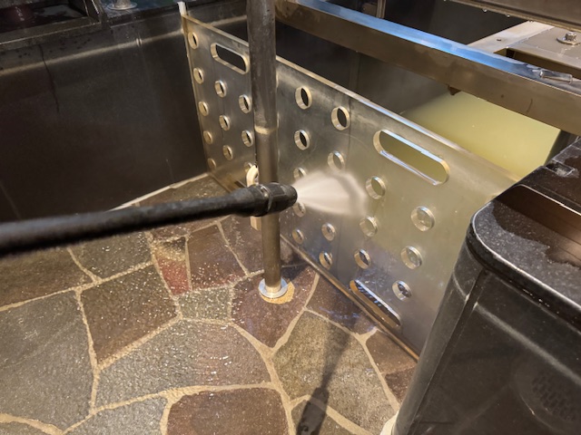 続いて、浴槽側にもたくさん配管がある為、高圧洗浄をしていきます。
