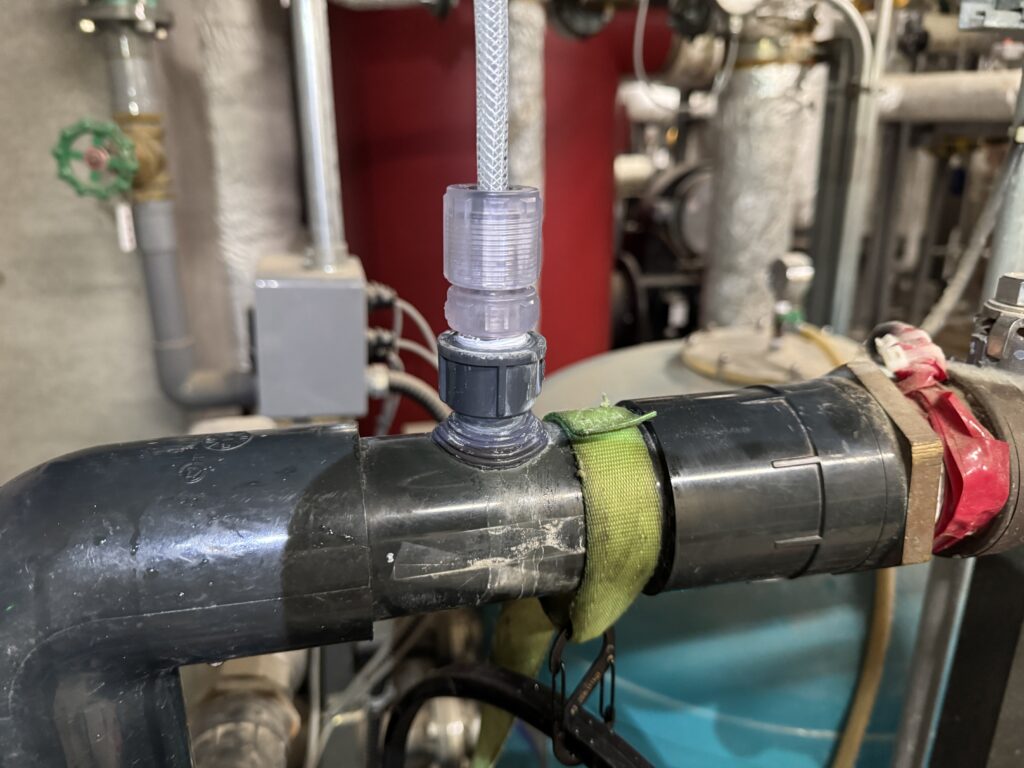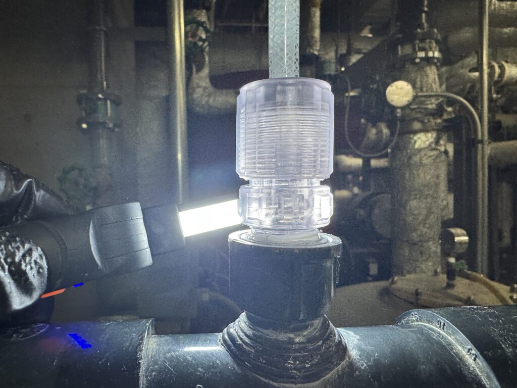 続いて、ろ過循環している浴槽水へ塩素を注入する際に重要になってくる部品「注入チャッキ弁」も新品へ交換します(^^)